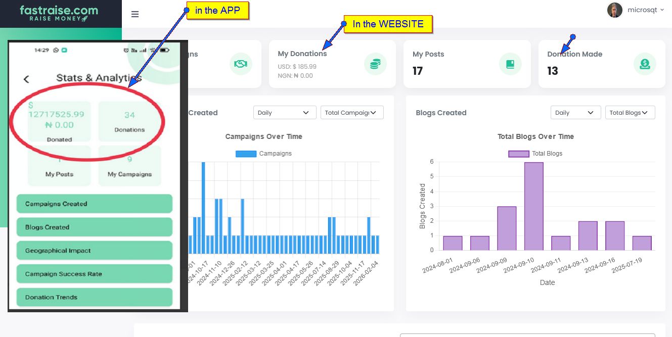DONATIONS RECEIVED OR GIVEN --app and web