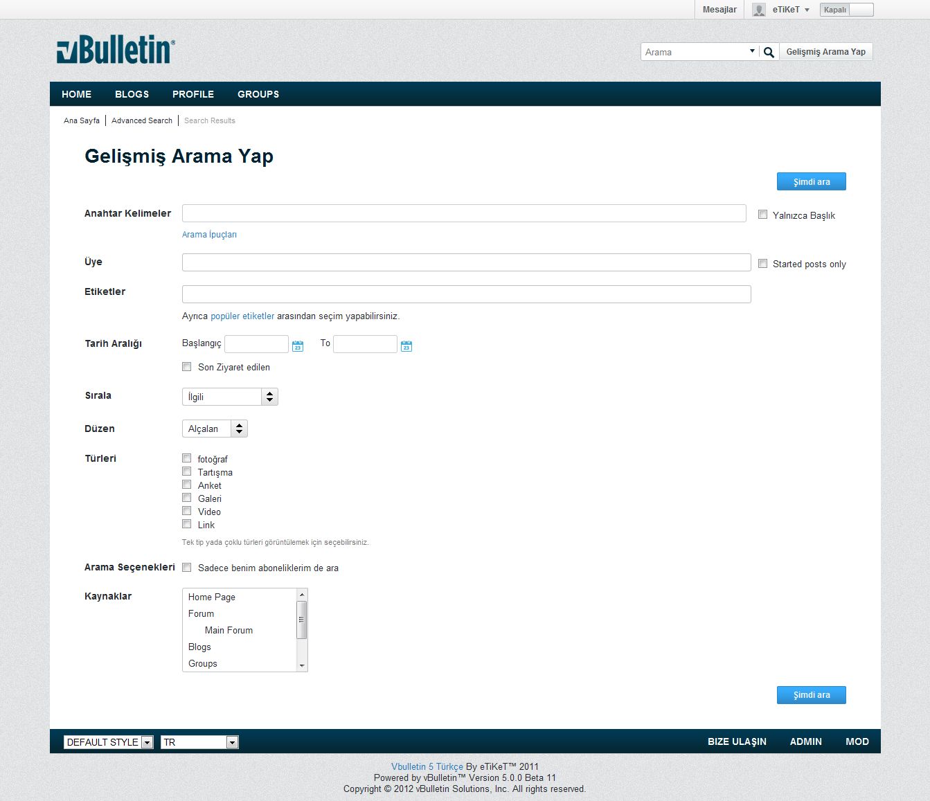 vbulletin 5 arama