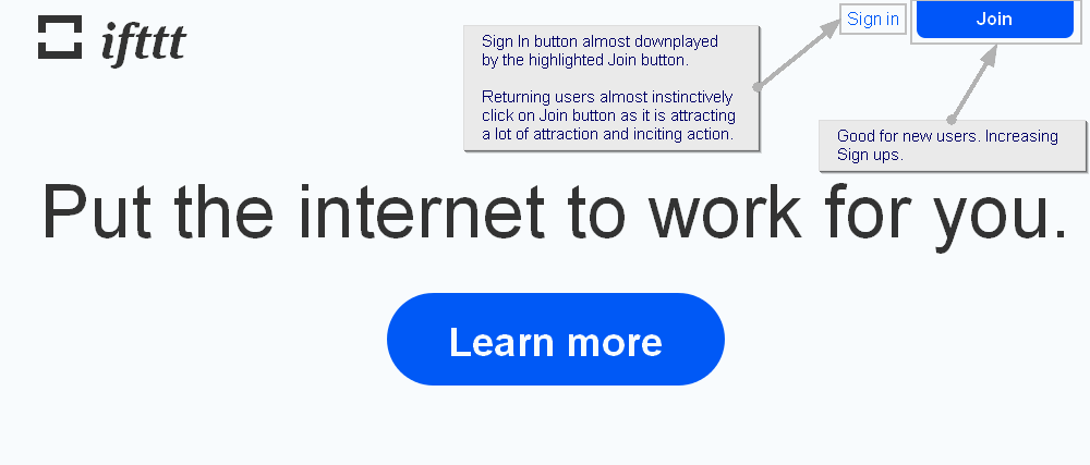ifttt.com homepage Sign In vs Join UX/UI issue