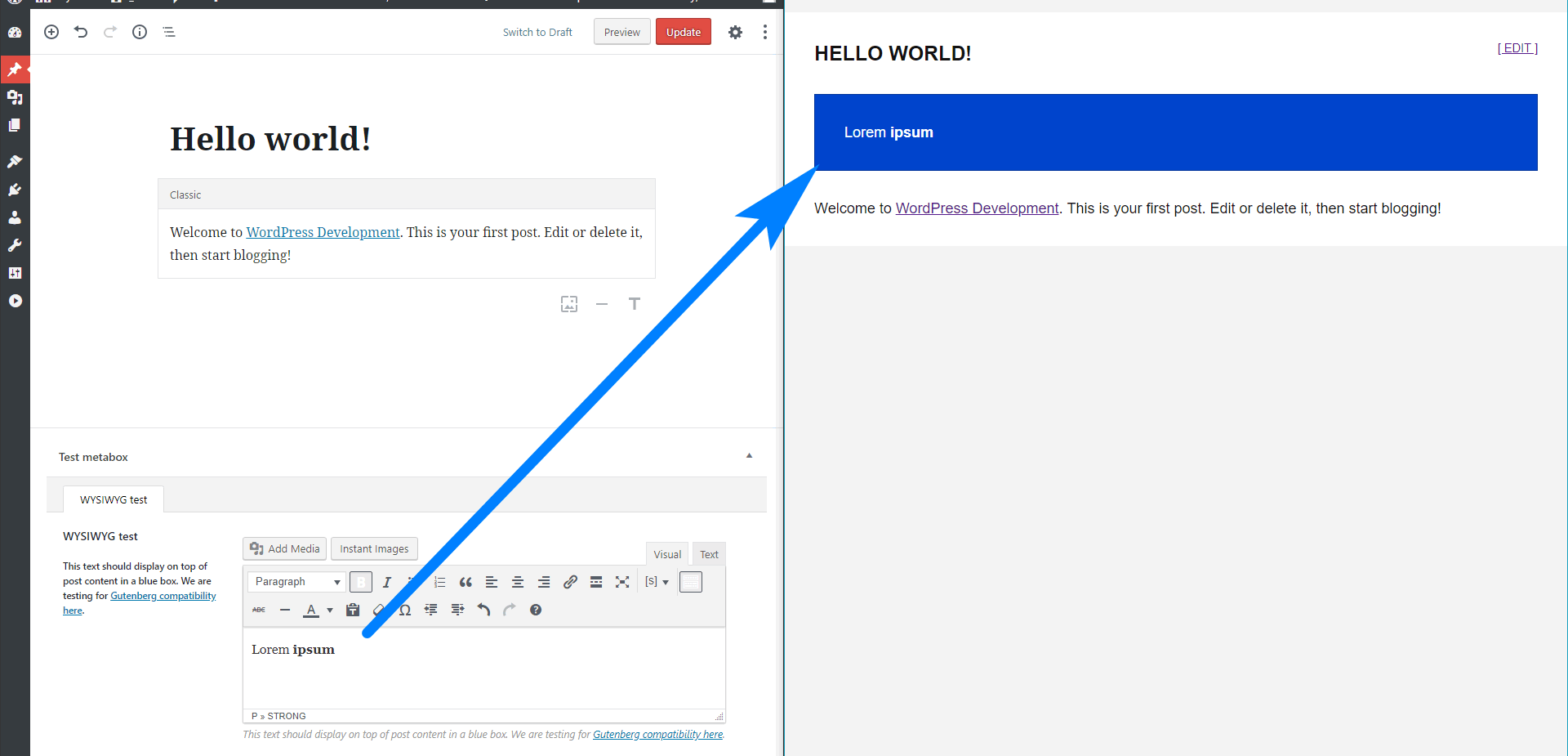 Gutenberg test: metabox wysiwyg fieldPosted by webmandesign 2018-11-27 GMT.