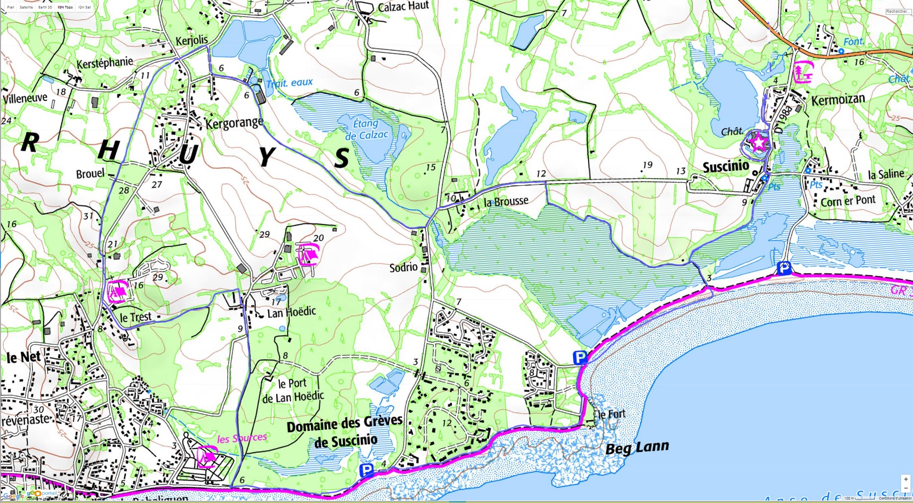 Beau temps , belle rando , beau château . On passe dans les marais ( chemin aménagé) et sur la plage ; voir aussi vue satellite et OSM