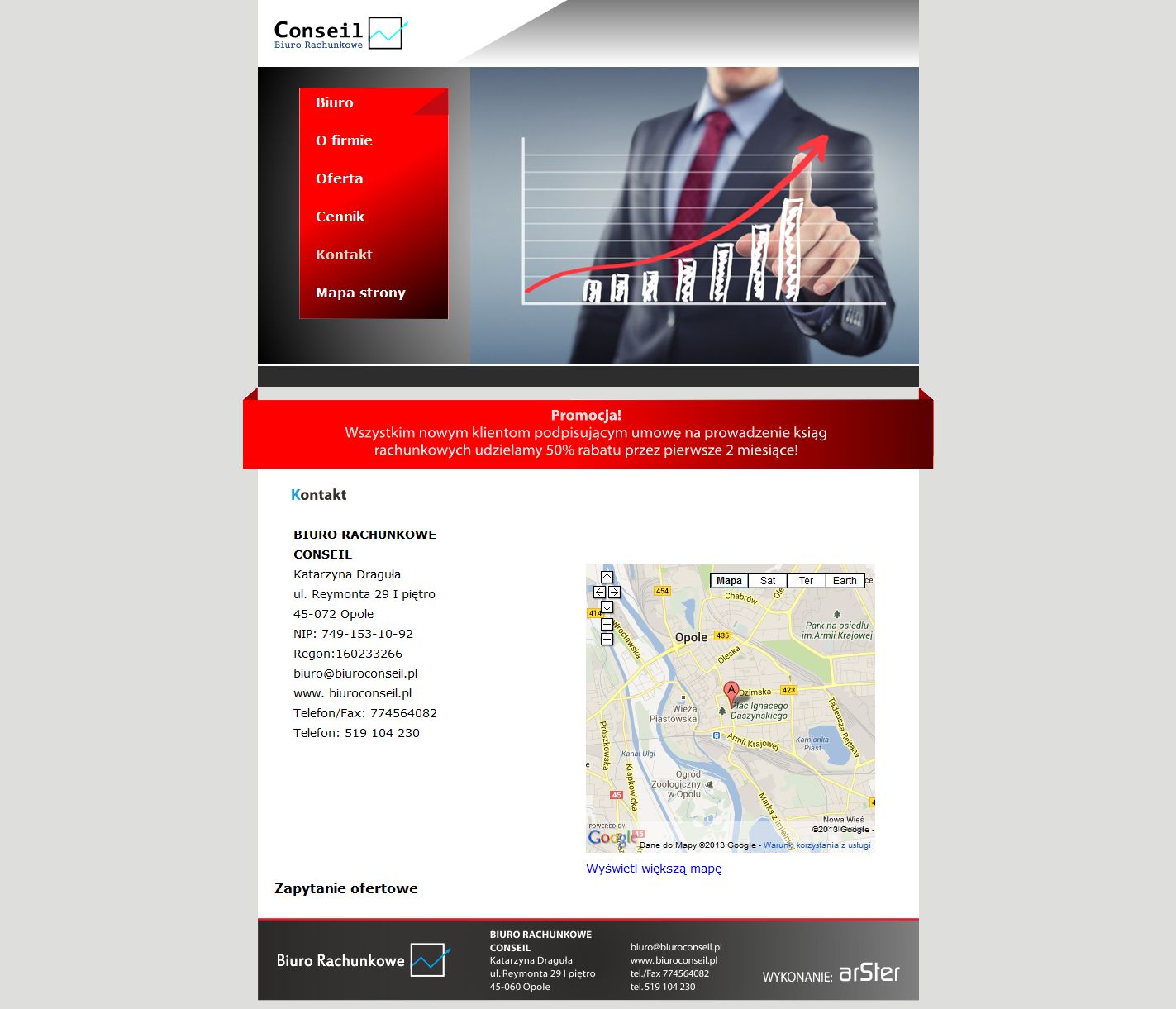 BIURO RACHUNKOWE CONSEILrnKatarzyna Dragułarnul. Reymonta 29 I piętrorn45-072 OpolernNIP: 749-153-10-92rnRegon:160233266rnbiuro@biuroconseil.plrnhttp://www. biuroconseil.plrnTelefon/Fax: 774564082rnTelefon: 519 104 230