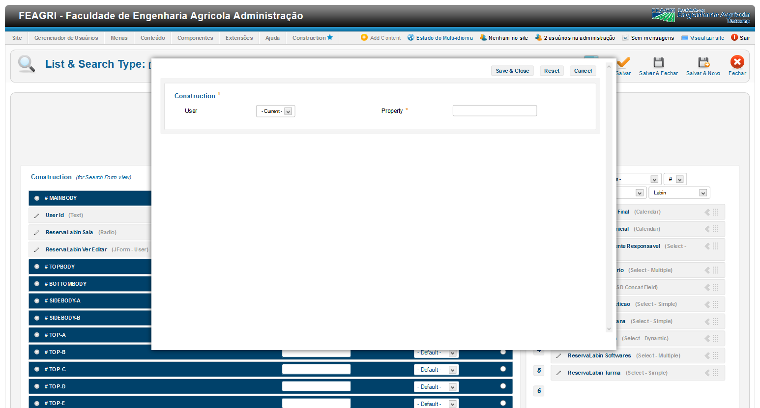 Opção Live Value, configure Seblod