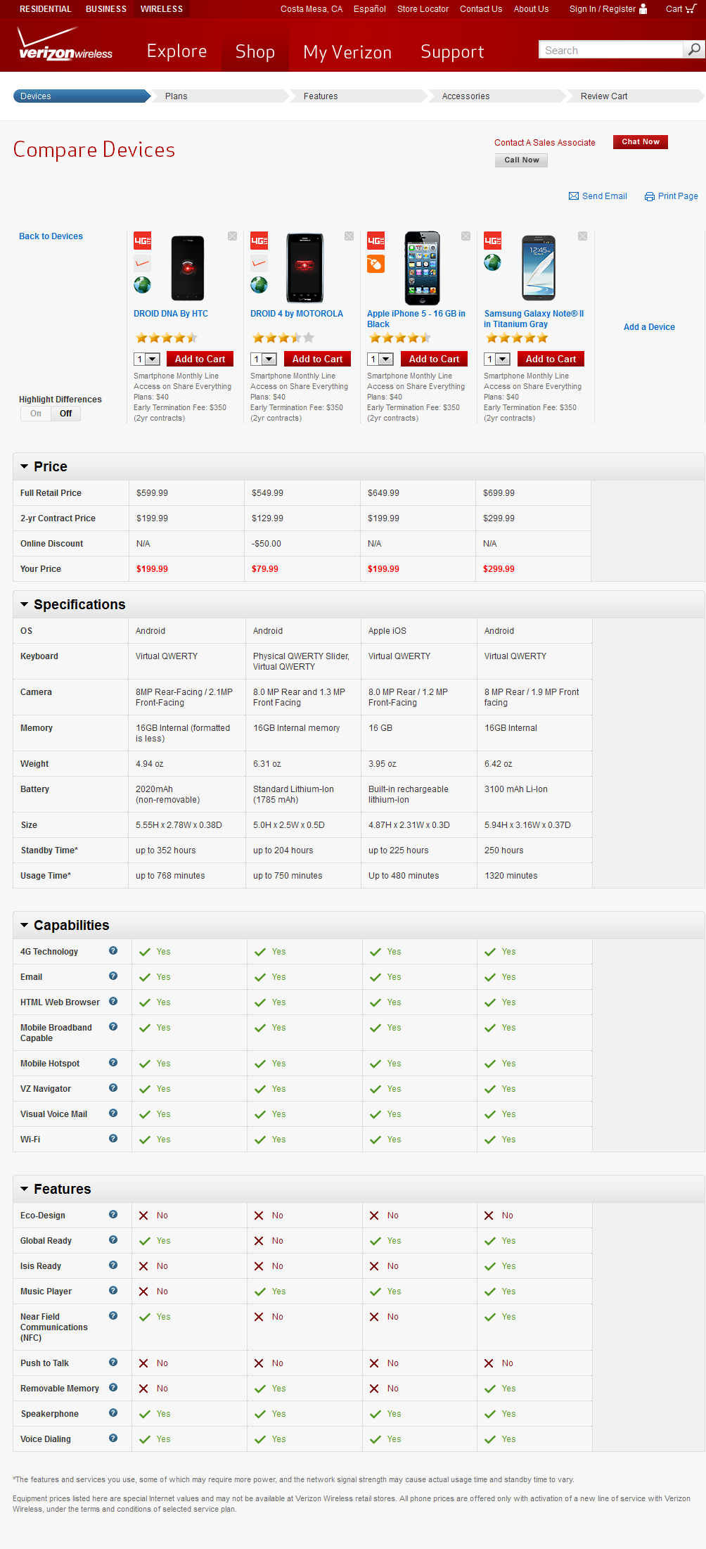 2013 verizon phone comparison