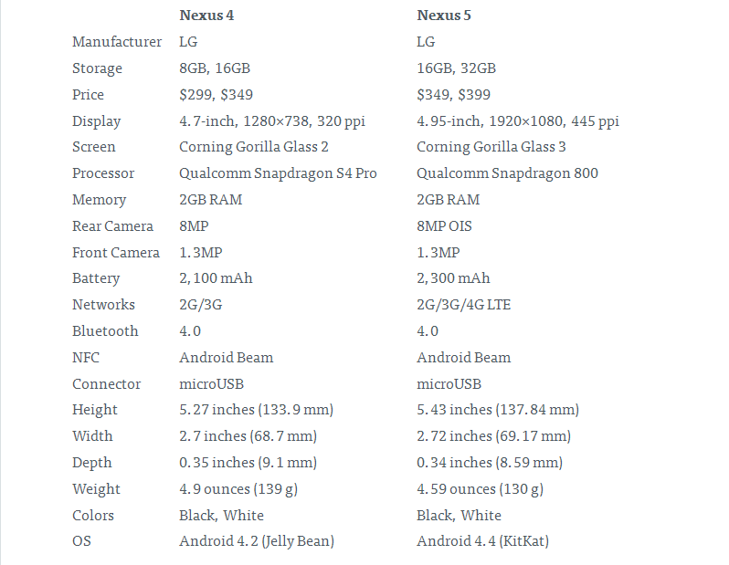 Nexus 4 Vs Nexus 5