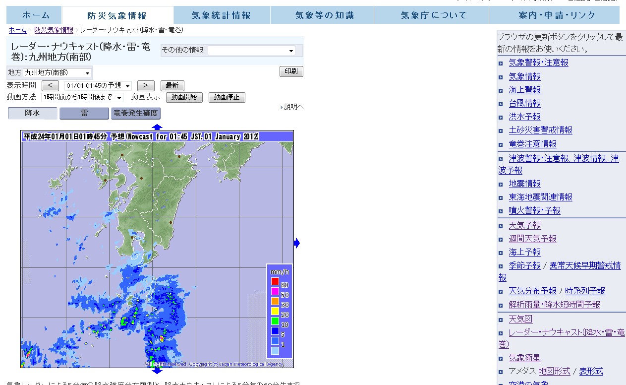 気象庁 | レーダー・ナウキャスト(降水・雷・竜巻) http://bit.ly/vKGKz1