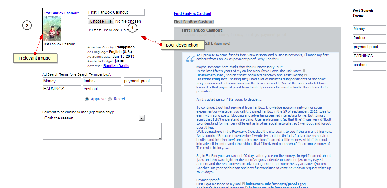 Ad Review Corrections