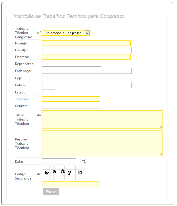 Form Inscrição de Trabalho no Congresso Excellence